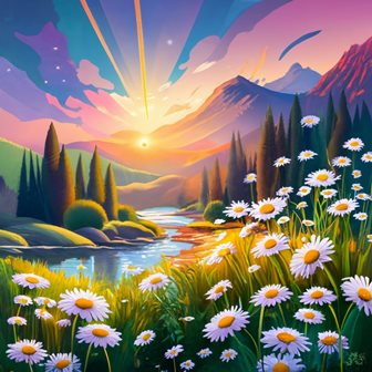 Спешит денёк укрыться маревом, И вечерок ступил на круг, И запылало небо заревом, И красотой пополнил луг. Прилягу я, на стог заброшенный, Случиться ноченьку встречать, И луг ромашковый, некошеный, Укроет ноченька опять.