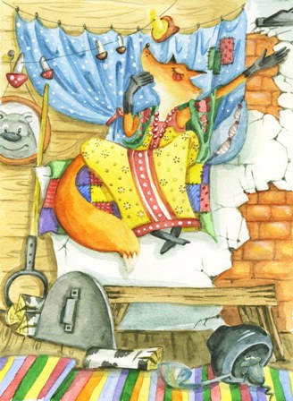 Прожила лиса без бед, Не один десяток лет, Никогда не дула в ус, Ощущала жизни вкус. Тут явилась старость к ней, Хоть рекою слёзы лей, Силы в лапах никакой, Ей не в радость свет дневной. Рассуждать лиса взялась: - В лужу мне нельзя упасть! У медведя есть изба, В ней пожить моя судьба! Слов лисичке не толочь, Мысль легко с собой волочь, Заявилась к Мишке в дом, Бьёт лиса пред ним челом: - Милый Мишенька, мой свет, Жизнь моя теряет цвет. Стала старой я совсем, Много сплю и мало ем. Дай в избе ты мне пожить, Мне себя не прокормить! Пожалел её медведь: - Мне грешно тут не хотеть. Время то не за горой, Старость та придёт за мной. Полезай, лиса, на печь, Силы сможешь там беречь, А с едой проблем не знать, Будешь жить, не горевать! Радость ей не скрыть ничуть, Ей спины теперь не гнуть, И лиса пошла в обход, Там, в сенях, уж лапы трёт. Взгляд лисы огнём горит, Мёд она в кадушке зрит: "Ах ты, Миша-Михаил, Жизнь мою ты подсластил! Силы я в себе найду, Ночью в сени я приду"! Вот на двор ступила ночь, А лисе уже невмочь, Стук да стук она хвостом, Глазки кажет с огоньком. Мишка задал ей вопрос, Взглядом он к лисе прирос: - Что ты, лисонька, не спишь, Целый час хвостом стучишь?! Да лисе не тратить слов, У неё ответ готов: - Там, в сенях, мышей полно, Выгнать их пора давно! Всё пищат они, пищат, Сон мой чуткий теребят! Отвечает Мишка ей: - Так гони их из сеней! И лиса с печурки, прыг, В сени ходом, напрямик, Мёда в бочке в самый край, Только лапой управляй! Съела лисонька вершок, Вновь на печке греет бок. Мишка глазки приоткрыл, Словом Мишка не грешил: - Мыши вроде б не пищат, Будешь спать, лиса, в услад! В небесах лиса кружит, Языком едва шуршит: - Прогнала мышей я всех, Им теперь не до потех. Спи, Мишутка, без тревог, Для мышей есть в поле стог!