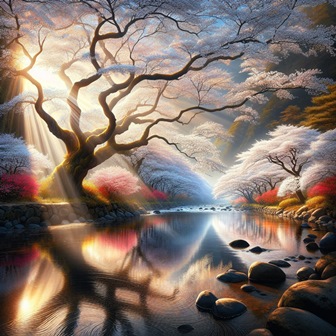 Плывёт черемуховый дым, Поют серебряные птицы, Покой под небом голубым, Звенят у рощицы криницы. Порхают запахи цветов, Травы и дикой мяты. Рассвет белёсый у стогов, Тревожный и лохматый. Уснула ночка во бору, Резвится в сонме грёз, Забавный ветер на яру, Звенит пригоршней рос.